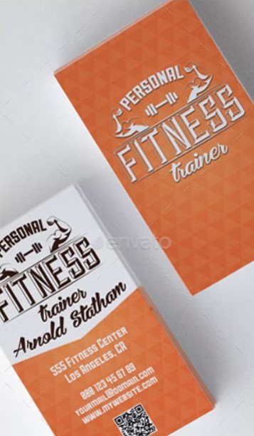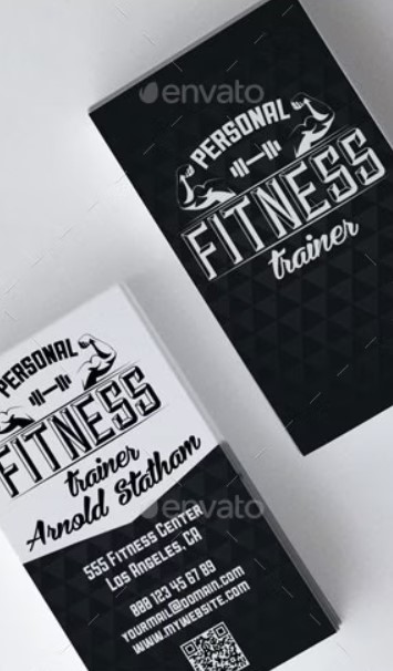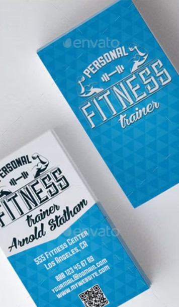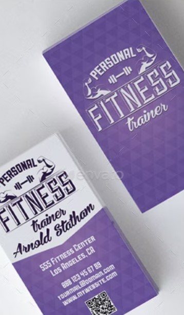 Biglietto da visita per palestre, centri fitness, personal trainers. Le immagini delle persone sono di esempio e non incluse. Possono essere sostituite con le vostre o altre simili.