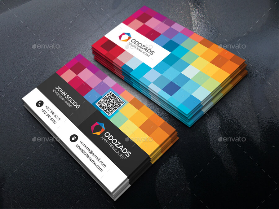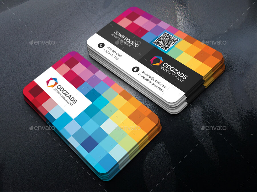 Biglietto da visita con uno stile moderno caratterizzato da una scacchiera colorata che rende l’aspetto molto vicace. Si lega perfettamente ad un logo colorato . Adatto a molte categorie.