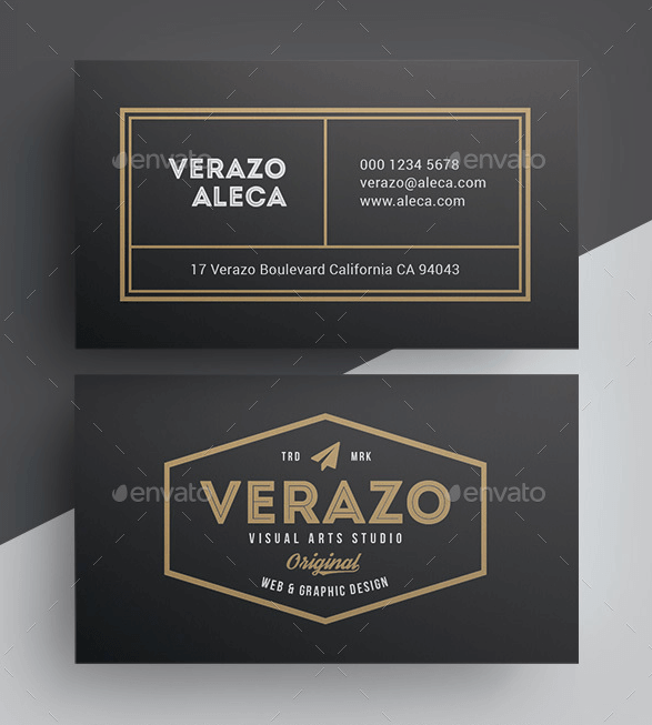 Biglietto da visita scuro con colore di contrasto bianco ed oro per un effetto visivo estremamente elegante. Ha una grafica minimale e polivalente perfetta per liberi professionisti in generale. Design versatile.