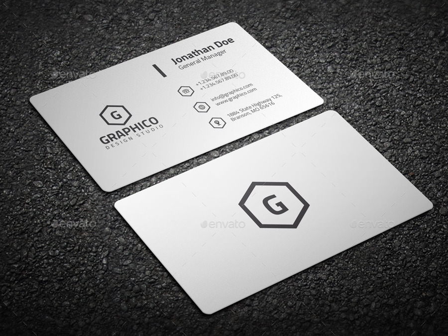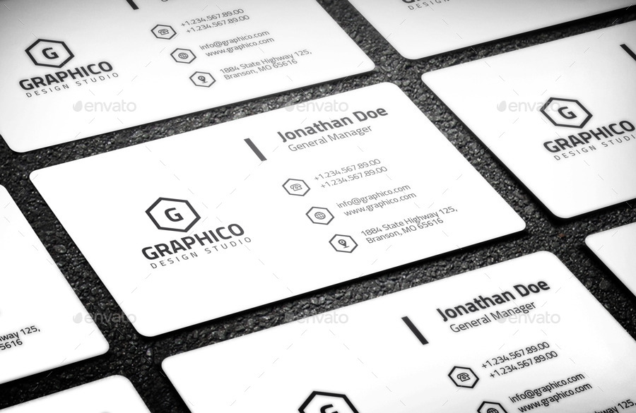 Biglietto da visita elegante, in versione a scelta tutto nero o tutto bianco, oppure bifacciale (bianco e nero).