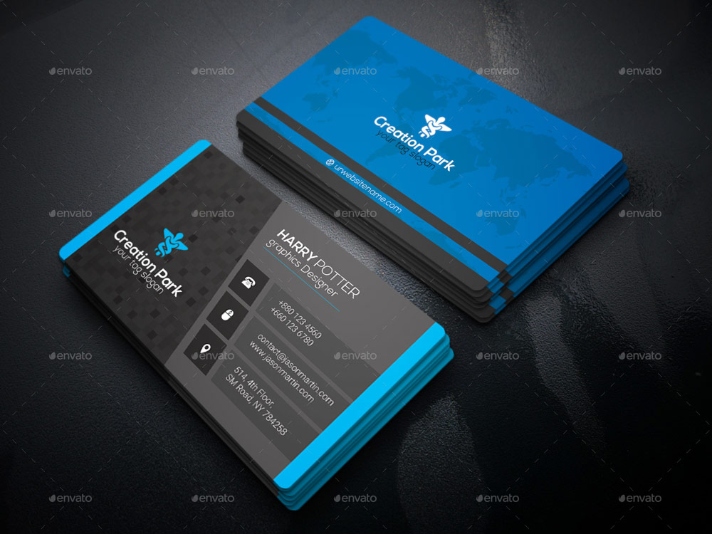 Biglietto da visita moderno adatto a business di natura internazionale per via della facciata con la traccia del mappamondo.
