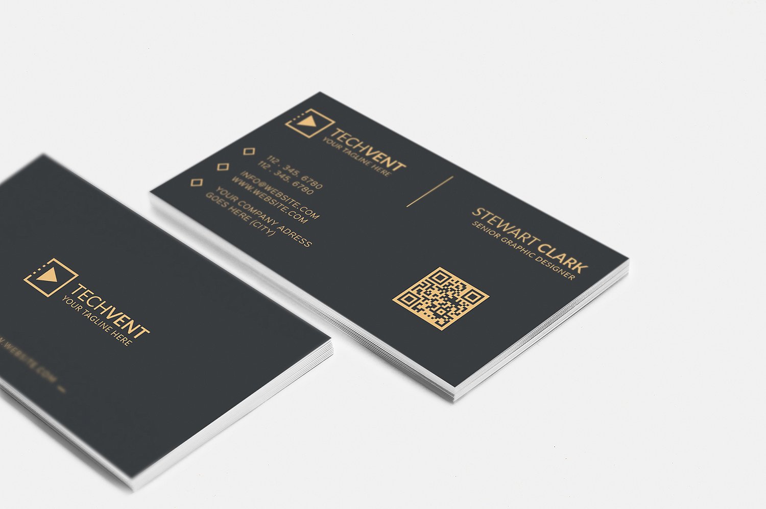 Biglietto da visita elegante con stile minimale, caratterizzato dal fondo scuro e testo con effetto tipo dorato.