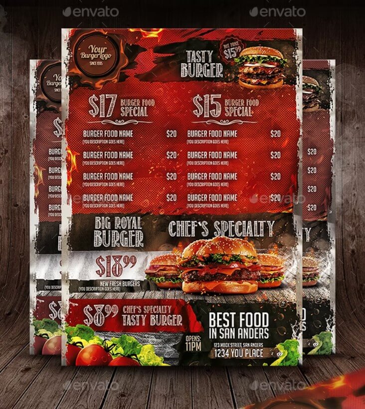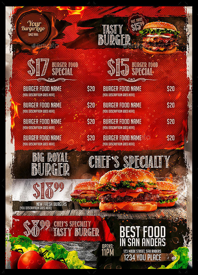 Menù per pub hamburgeria V4