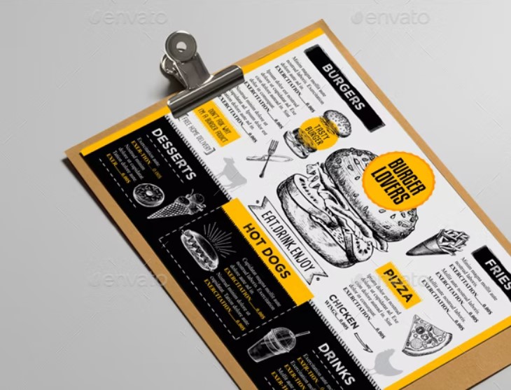Menù per pub hamburgeria V9