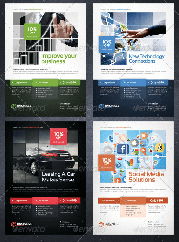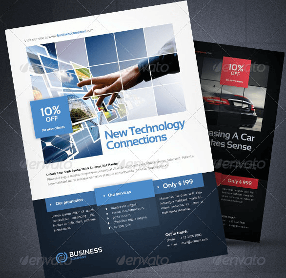 Volantino flyer o cartolina di presentazione dei servizi aziendali.