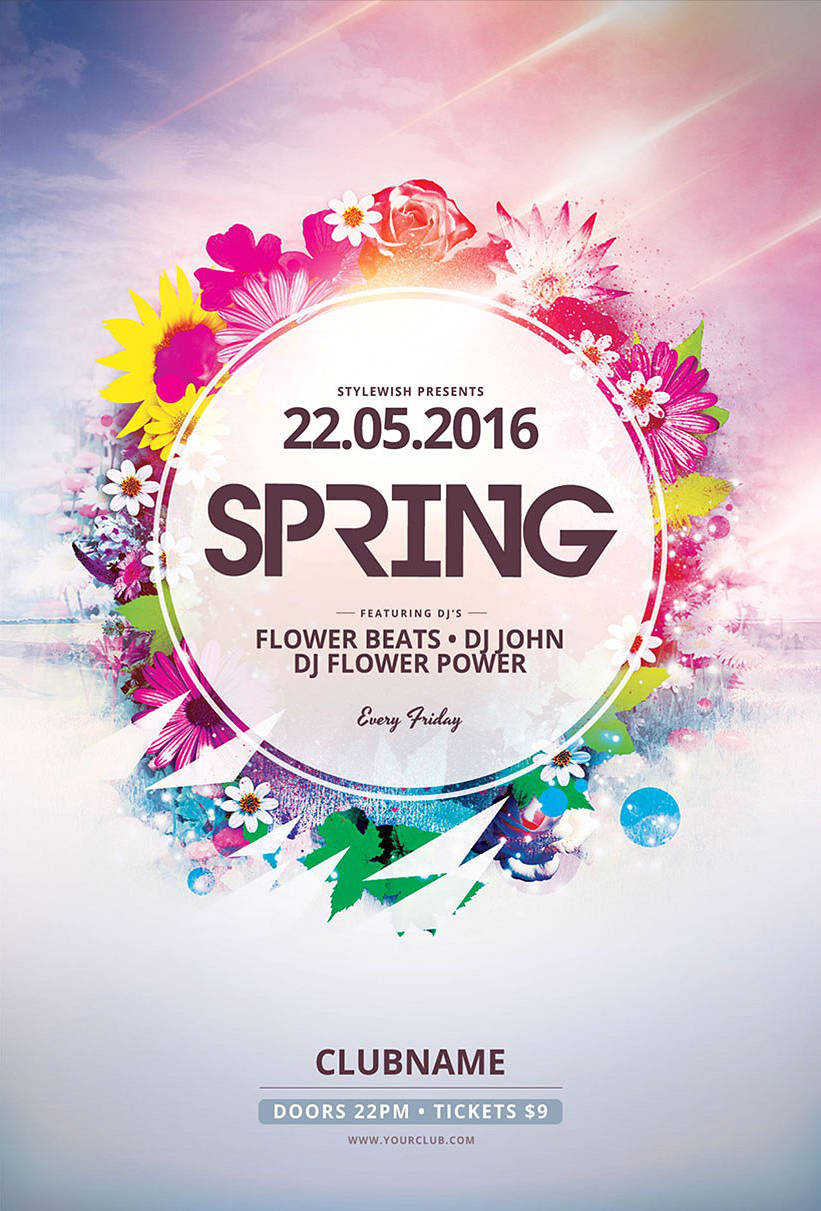 Volantino, flyer, cartolina o poster con la grafica elegante e moderna, ideale per promuovere una festa di primavera in genere. Per locali, attività, associazioni e musica. Adatto a tutti gli usi. Puoi scegliere anche solo il file senza la stampa.