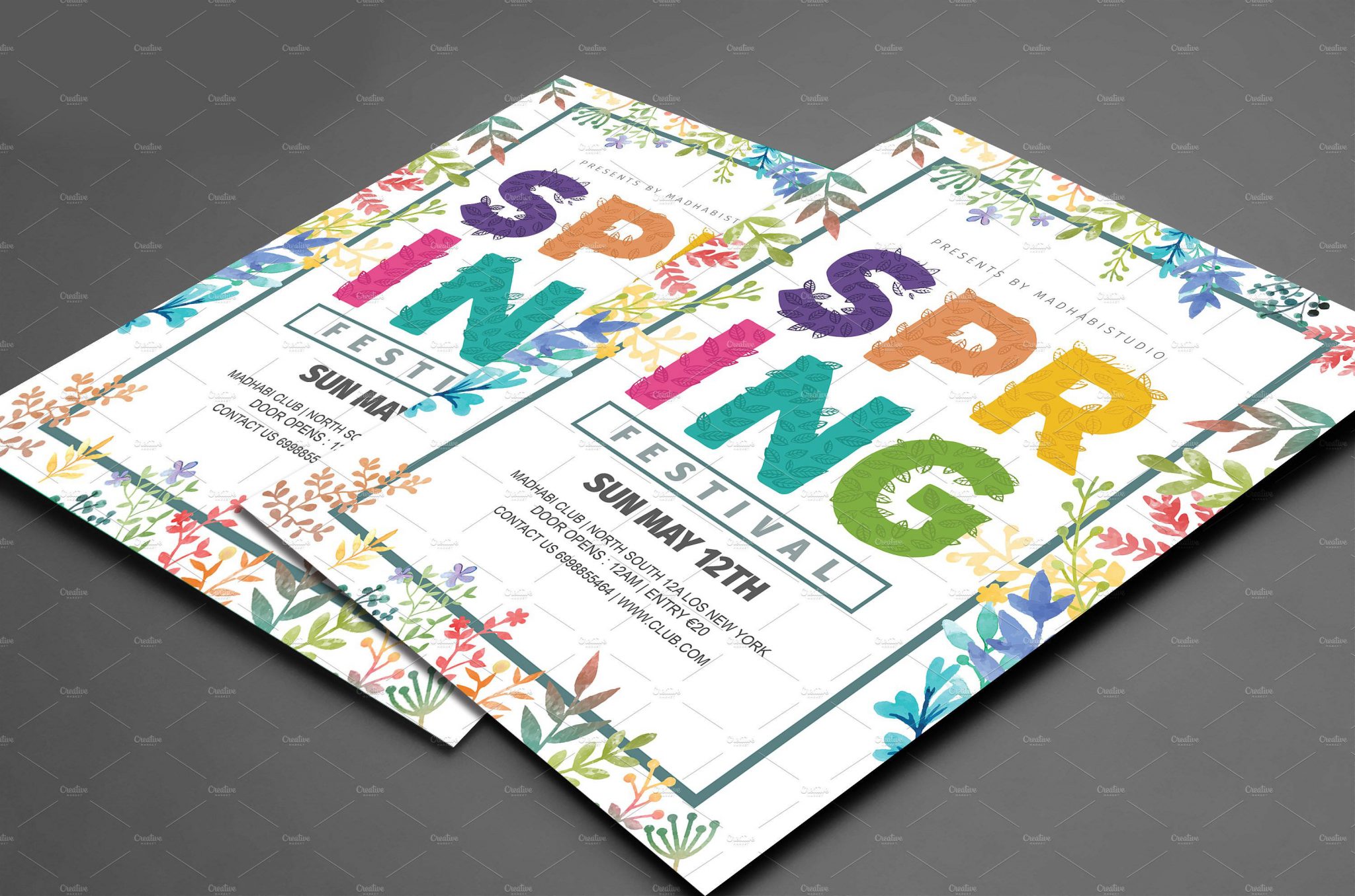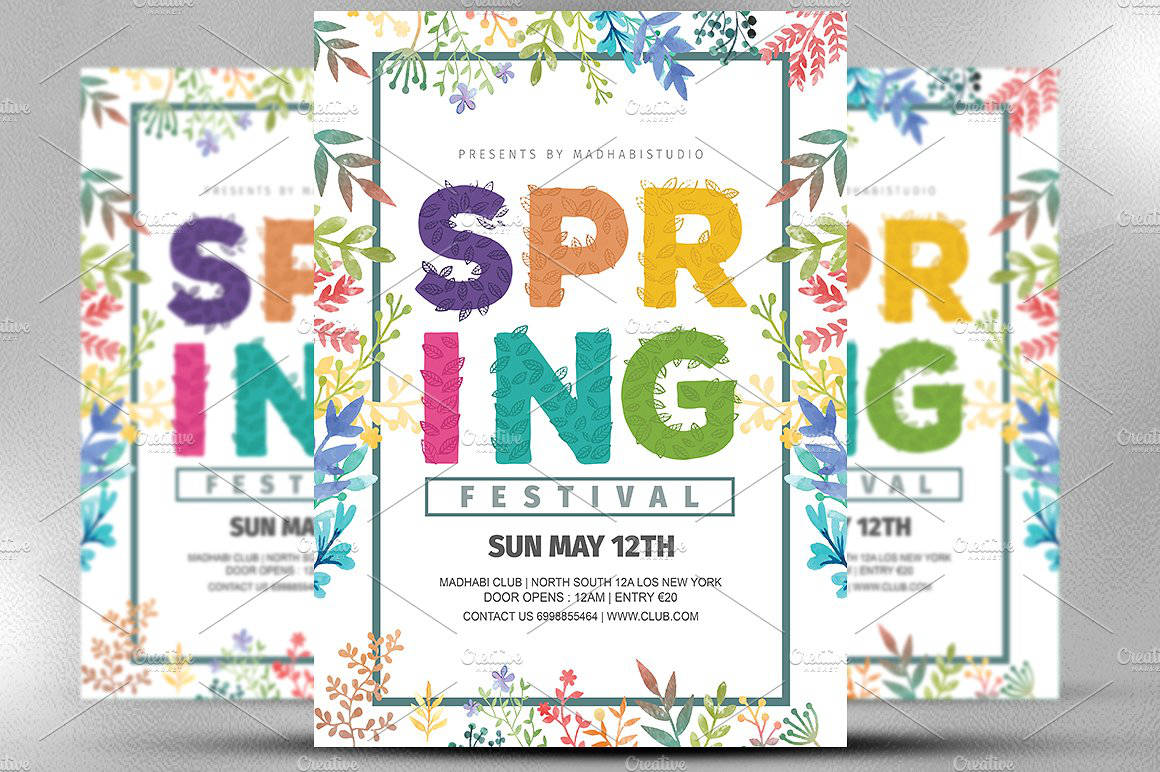 Volantino, flyer, cartolina o poster con la grafica elegante e moderna, ideale per promuovere una festa di primavera in genere. Per locali, attività, associazioni e musica. Adatto a tutti gli usi. Puoi scegliere anche solo il file senza la stampa.