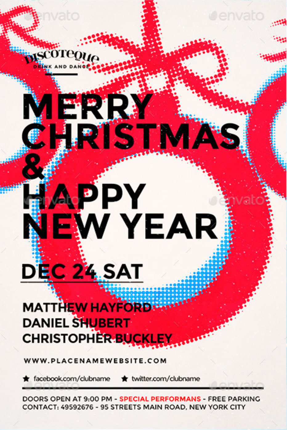 Volantino festività natalizie stile moderno e tipografico