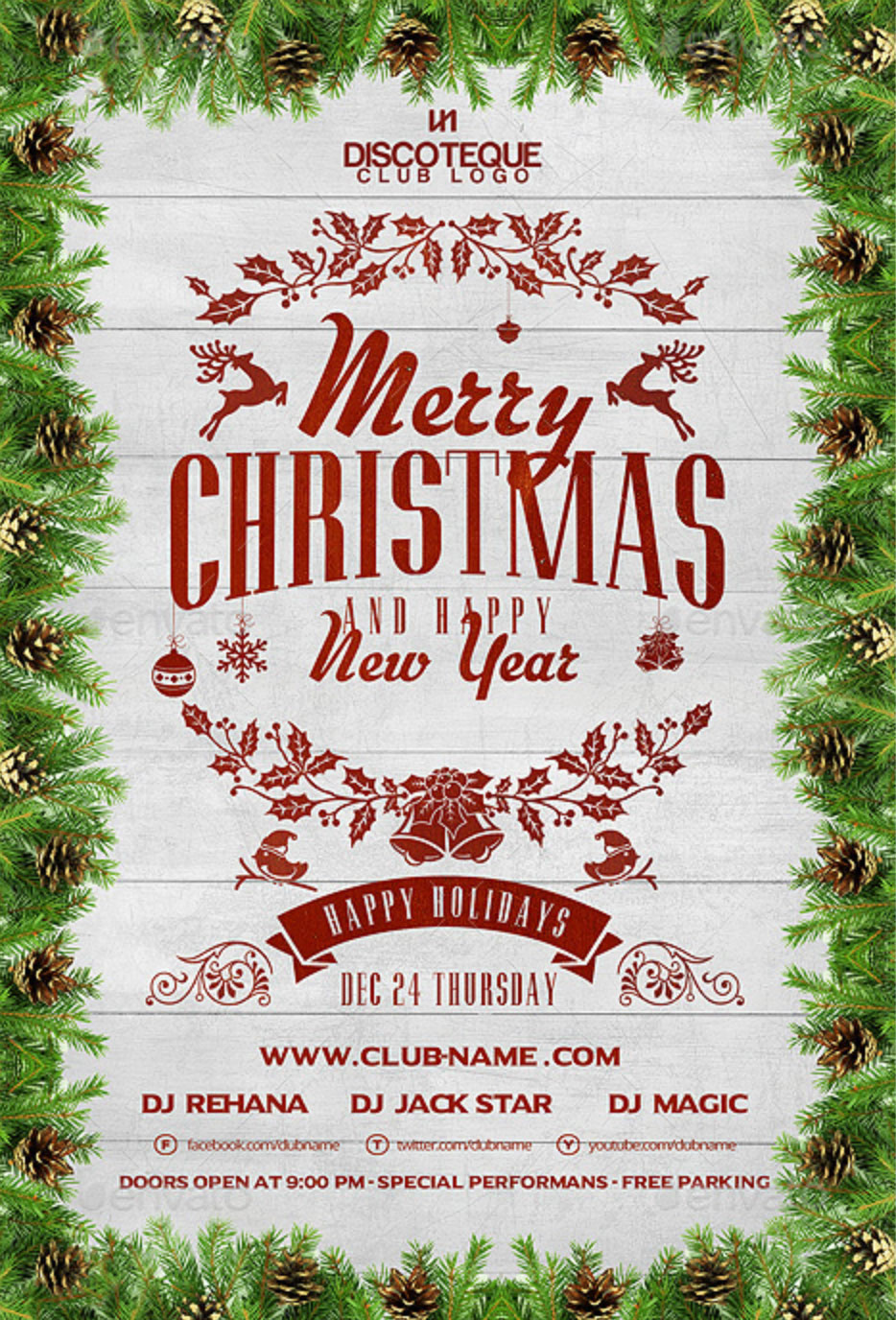 Volantino per evento natalizio con decorazioni