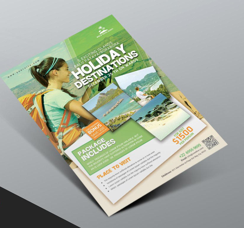 Volantino, flyer, cartolina o poster con la grafica elegante e moderna, con grande immagine personalizzabile, ideale per promuovere un viaggio, un’uscita o evento turistico. Per associazioni, guide turistiche o escursionistiche, agenzie di viaggio. Puoi scegliere anche solo il file senza la stampa.